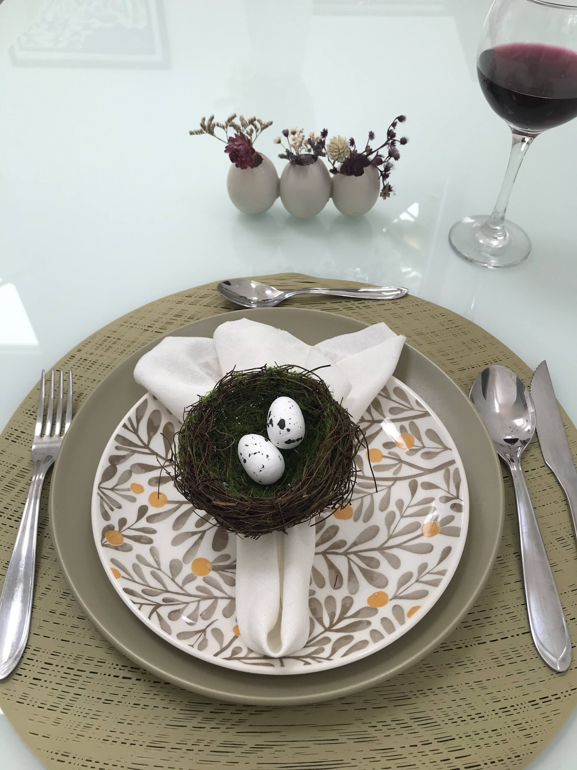 Porta-guardanapo ninho: uma excelente opção de decoração para a mesa de Páscoa.